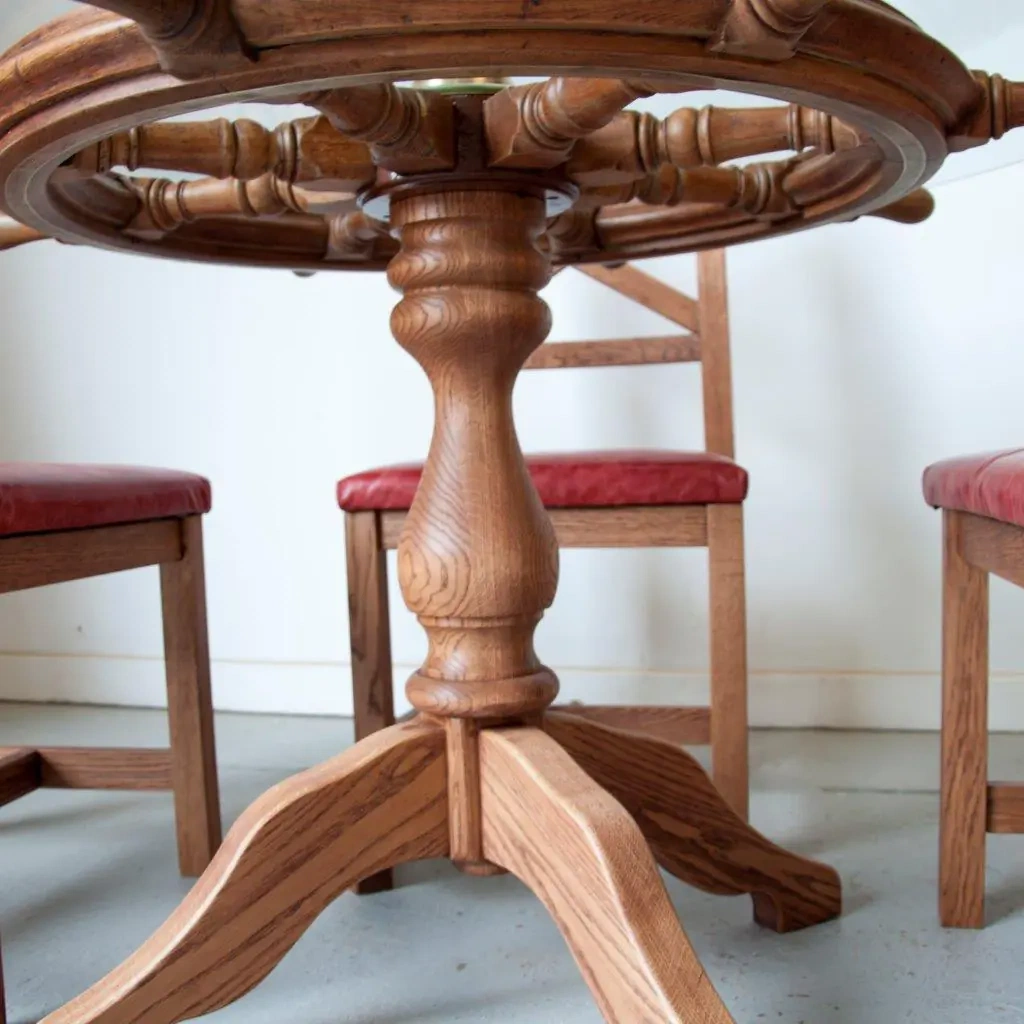 We were approached by one of the trustees of the ship with an unusual request – to take the aft shipโs wheel, renovate it, and incorporate it as a table with a set of period appropriate chairs.