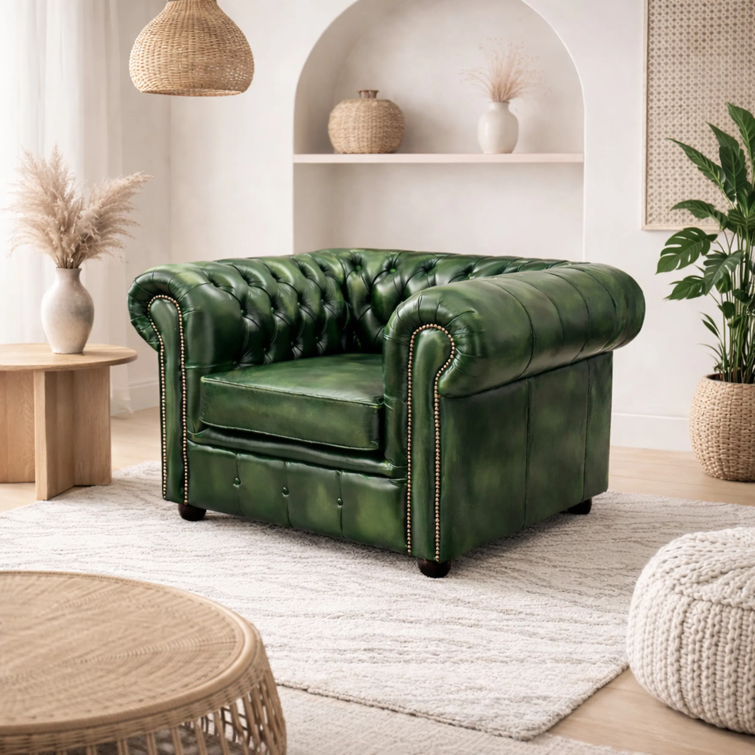 Indulge in the elegance of the Chesterfield Armchair, a timeless icon of comfort and style. Featuring deep leather buttoning, and rolled arms it’s the perfect solo retreat for relaxed, elegant lounging.