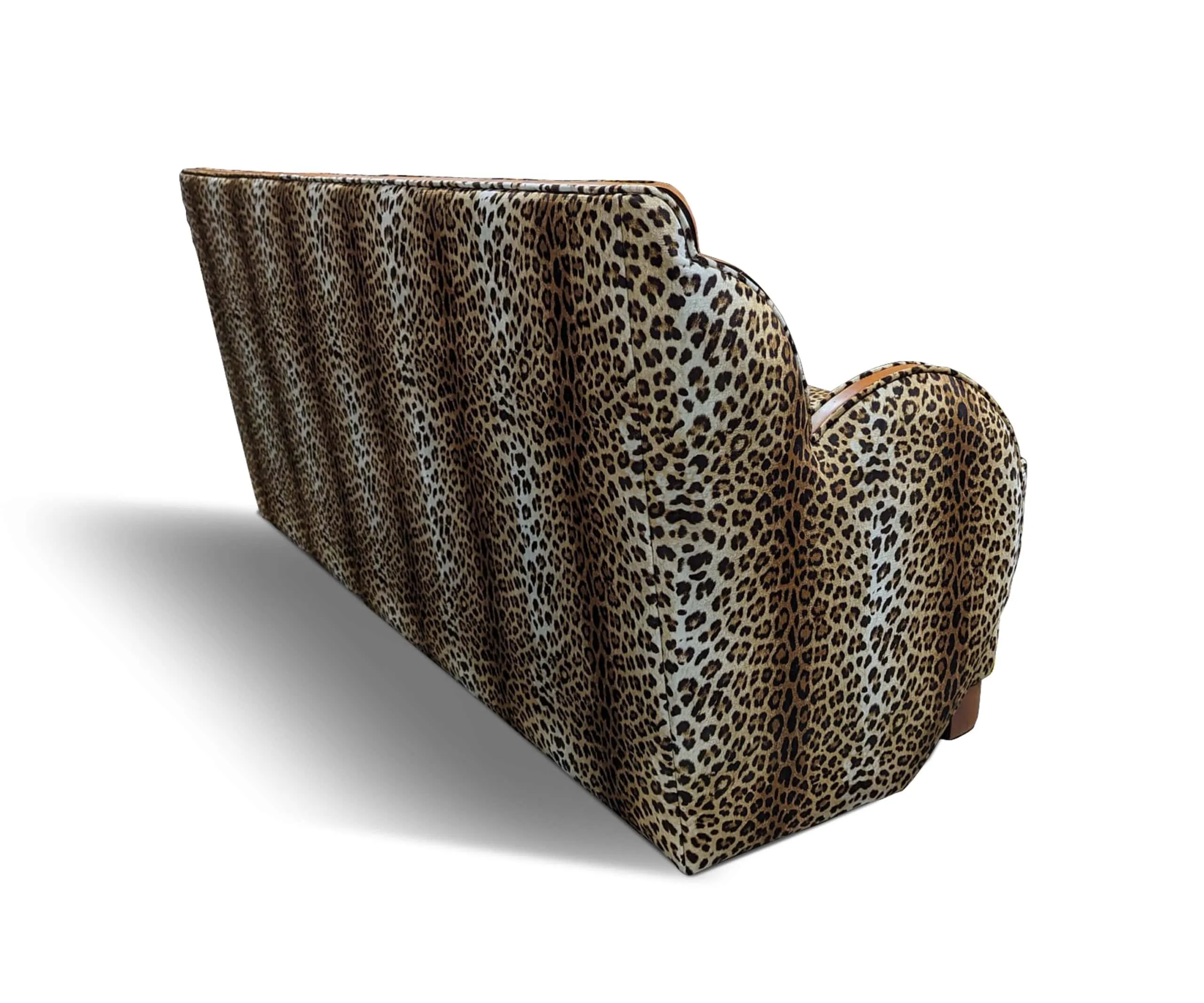 The Cloud is a reproduction of classic art deco couch designed and manufactured by the famous cabinet makers, the Epstein brothers, Harry and Lou, in Britain in the 1930s. Available in both polished wooden or fabric inlaid outside arms.